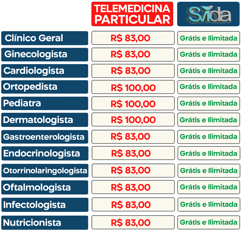 Esta lista de especialidades possuem verdadeiros profissionais, que estão disponíveis 7 dias da semana, incluindo sábados, domingos, feriados e podem se tornar o seu médico da família. Faça sua assinatura.